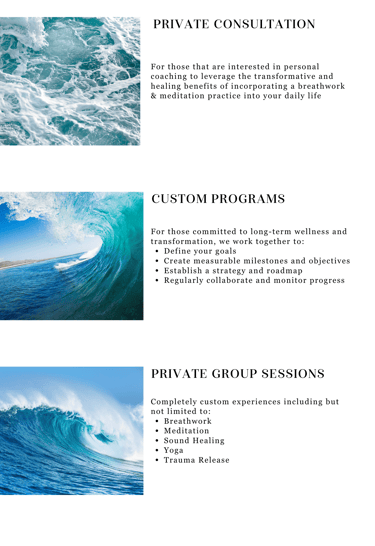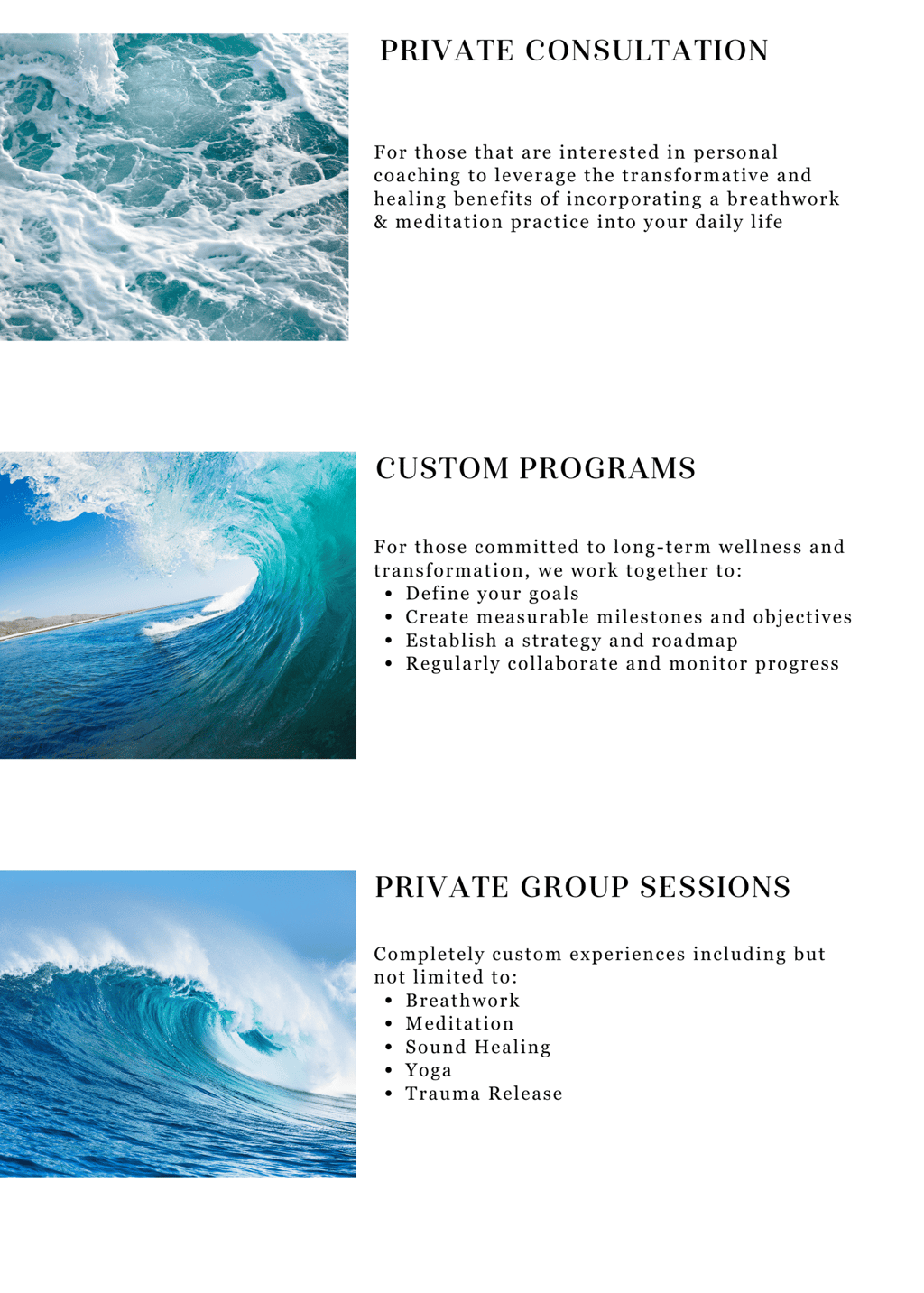 For those that are interested in personal coaching to leverage the transformative and healing benefits of incorporating a breath work & meditation practice into your daily life